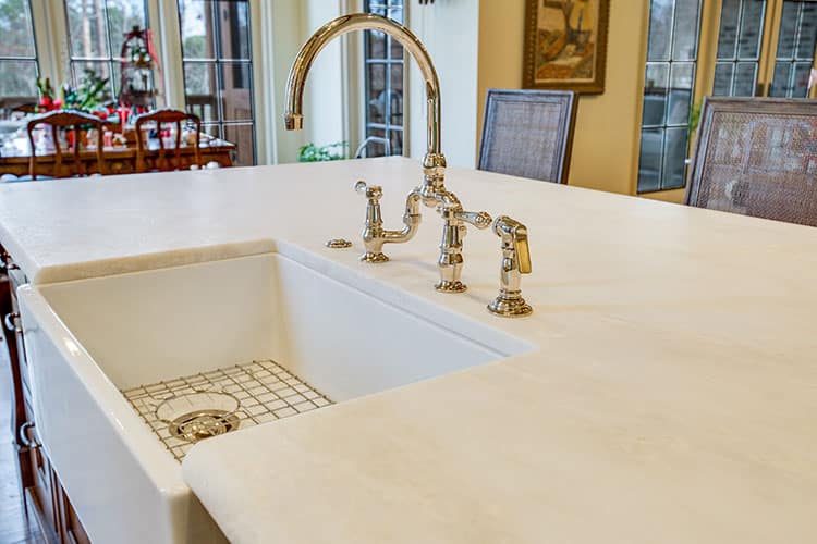 This natural stone’s relative softness makes it vulnerable to surface damage. Knives and sharp implements can easily create scratches if used directly on the counter.